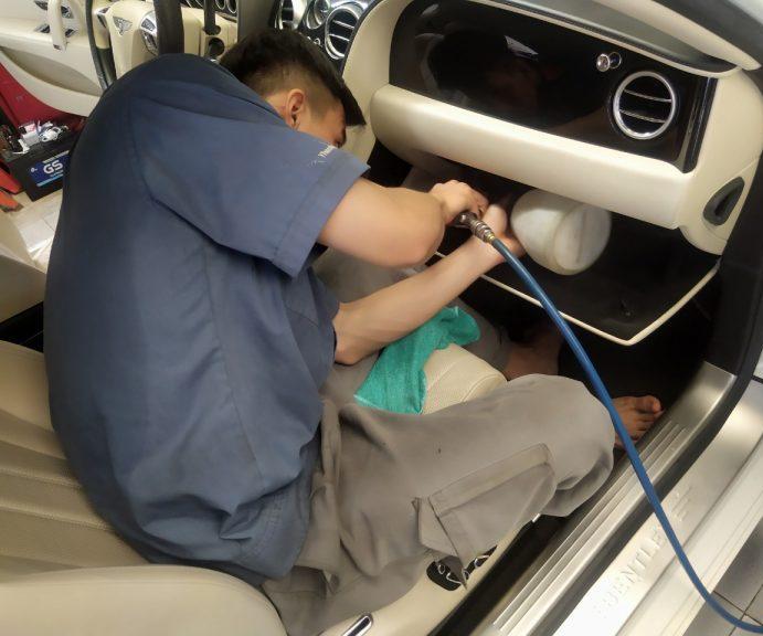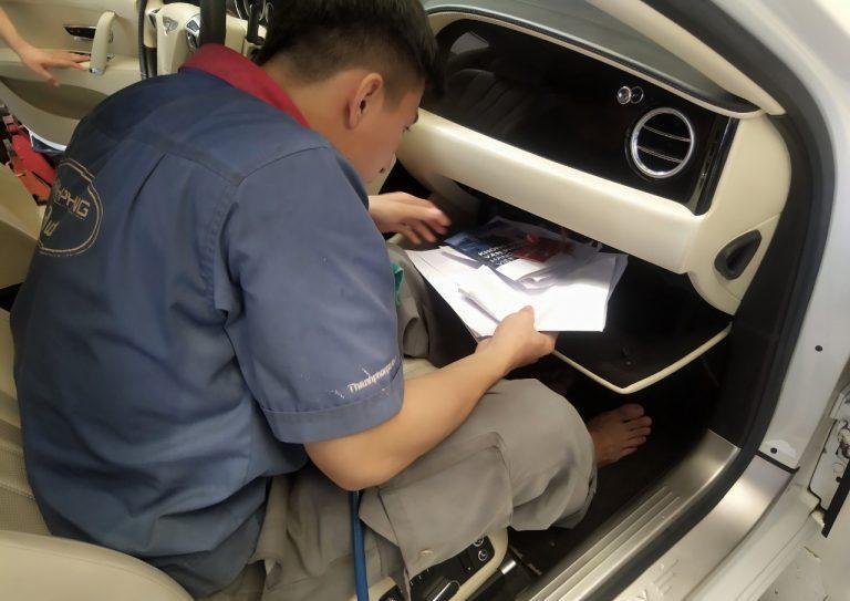 Bước 3: Hút bụi, rác và các mẫu nhỏ có trên ghế, sàn xe, taplô…